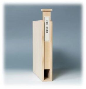 この桐箱は、一般的な文箱に見られるかぶせ式とは異なり、希少性の高い「落とし蓋」構造を採用しております。